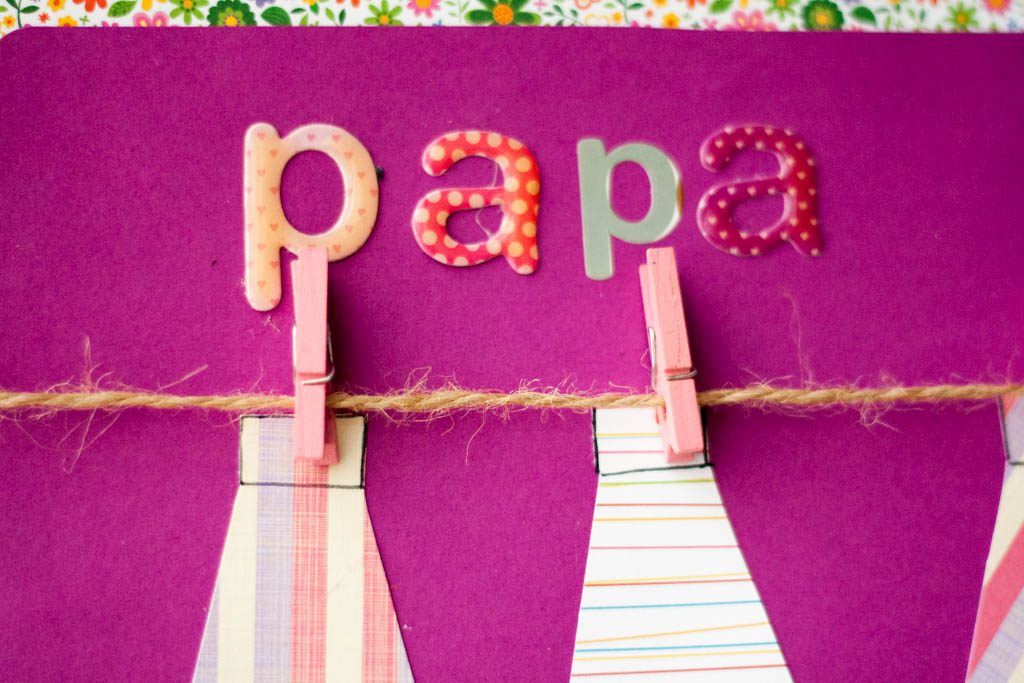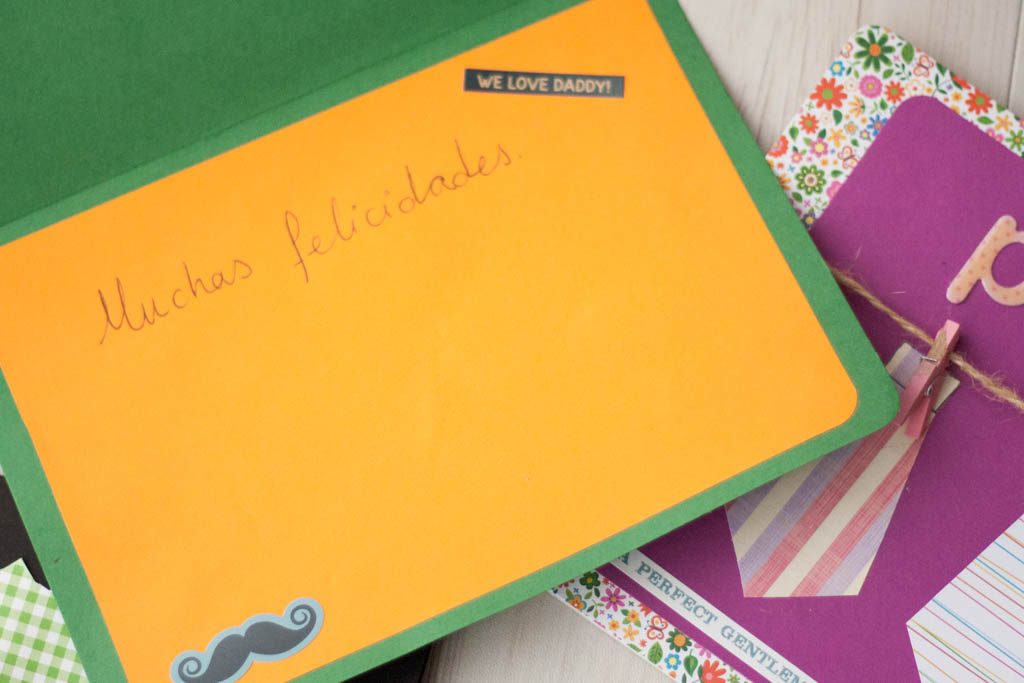 Para hacer esta tarjeta para el dia del padre, he usado una cartulina estampada para el fondo. Redondea las esquinas para un acabado más profesional.