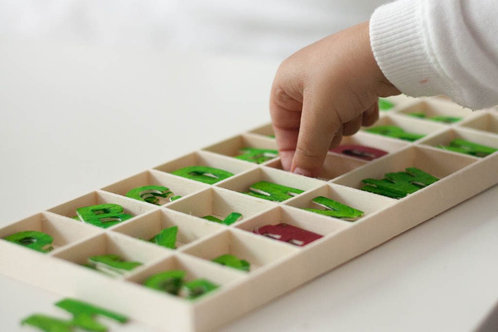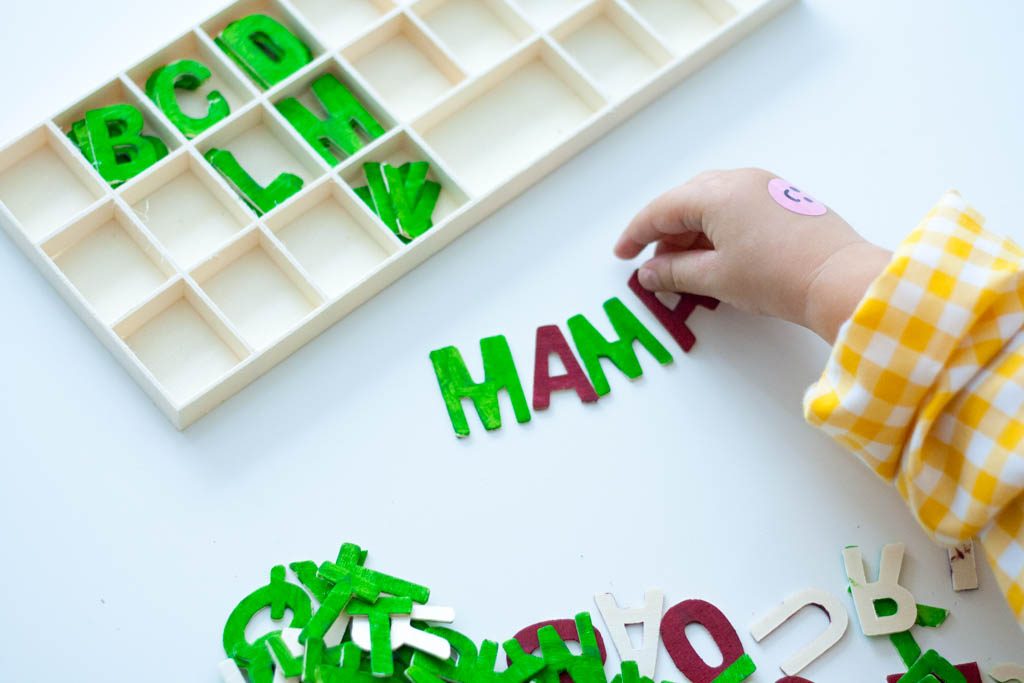 niña jugando con abecedario montessoriAlejandra ya tiene 3 años, por lo que se encuentra en el periodo sensible para adentrarse en el aprendizaje de la lectoescritura según la filosofía montessori (de 3 a 6 años). Mi idea es esperar a que ella demande este tipo de material, pero yo lo voy preparando para cuando llegue el momento.caja con abecedario montessoriAlgunas de las características que tenemos que tener en cuenta a la hora de preparar un abecedario montessori es que debe ser de materiales naturales, que las consonantes deben ser de color diferente a las vocales y que debe ser móvil.abecedario montessori caseroLos niños aun se encuentran en un periodo de aprendizaje del trazado, por lo que dibujar con lápiz las letras puede suponer un obstáculo. Por esta razón la filosofía montessori propone letras ya preparadas con las que puedan jugar y organizar las palabras.letras de maderaEstas letras las he comprado en un bazar. Son de madera y aunque también las tienen en minúsculas, es más sencillo para ellos comenzar con un abecedario en mayúsculas.pintura acrílicaCon un poco de pintura, un pincel y un poco de paciencia hemos preparado el material y hemos pasado una tarde divertida pintando juntas.img_9146Para facilitar la colocación de las letras, solo las he pintado por un lado, el que estará hacia arriba.letra de madera pintadaimg_9159Ha sido un descubrimiento ver el interés que Alejandra ha tenido en saber como se escriben algunas palabras (mamá, papá, abuela…). abecedario