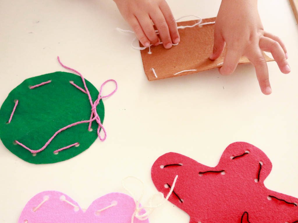 Con un poco de fieltro, he preparado unas formas sencillas y divertidas con las que trabajar la motricidad fina. Coser, a demás de proporcionarles un buen recurso para su futuro, les enseña la paciencia y a mantener la concentración.