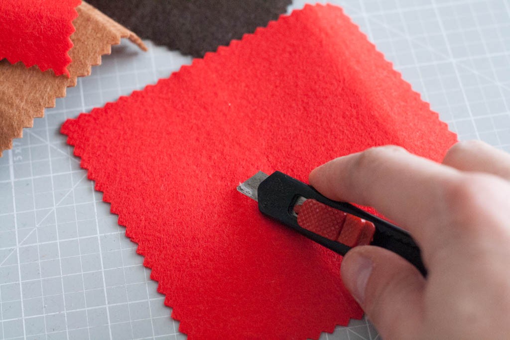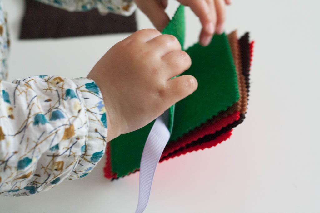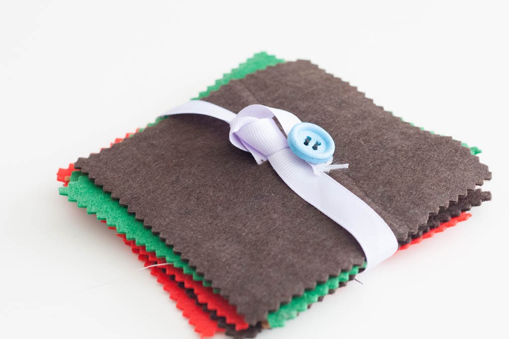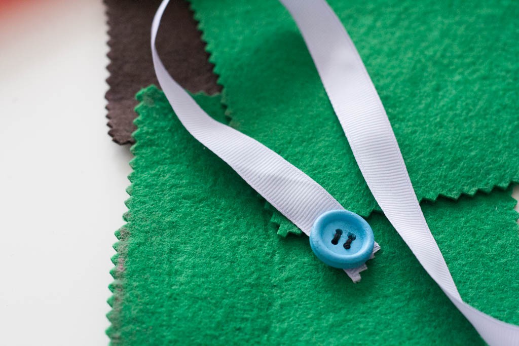 Sólo necesitas unas piezas de fieltro, una cinta y un botón. Para empezar, he elegido un botón grande que cambiaré cuando tengamos este dominado.