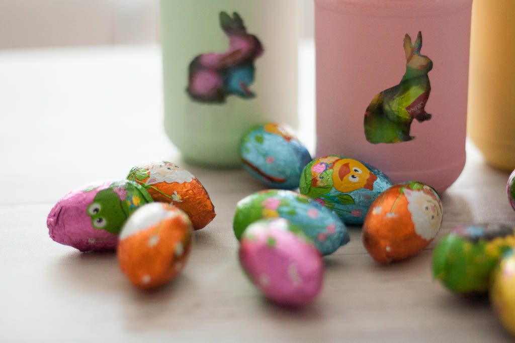 Los botes los he rellenado de huevos de chocolate de Lidl.