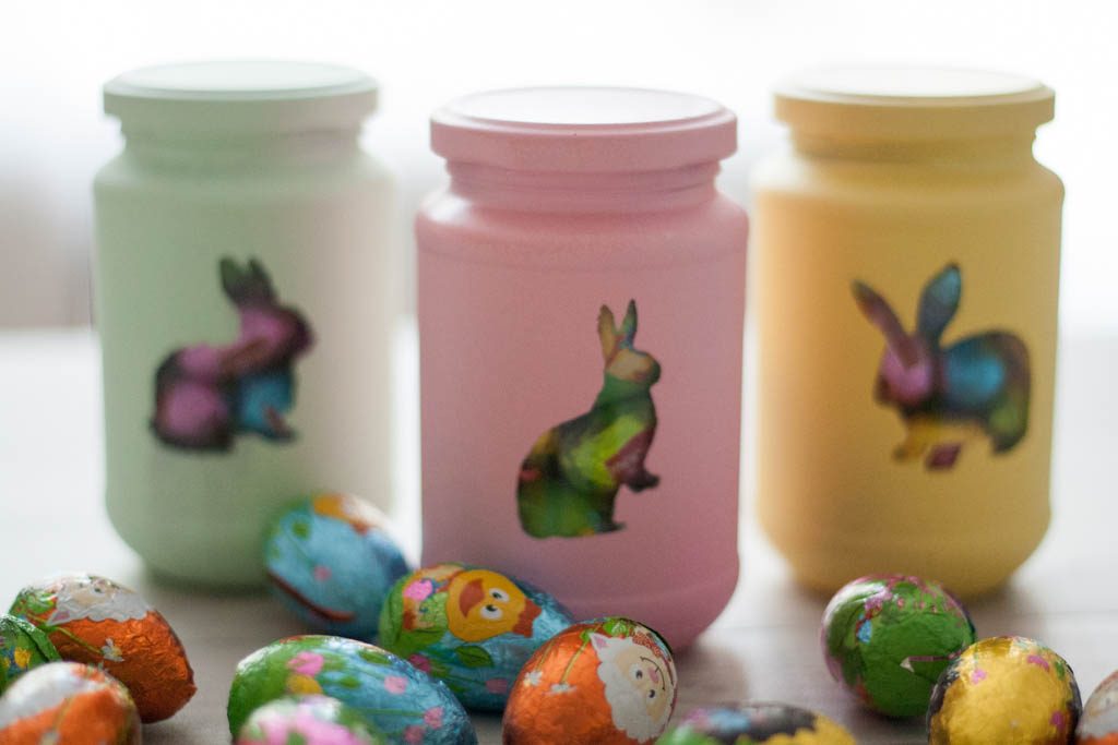 Paso a paso para hacer botes de vidrio reciclado para pascua.