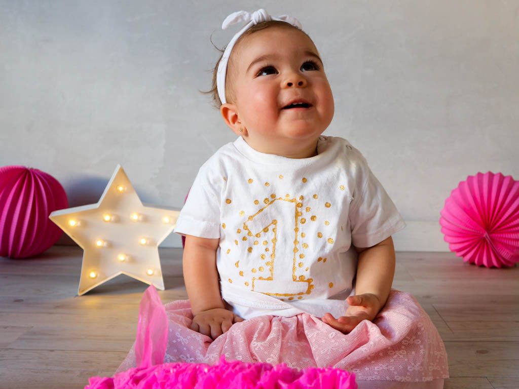 En principio, cualquier ropa es adecuada para esta sesión de fotos, pero puedes aprovechar para prepararle una camiseta especial donde se vea un 1 bien grande.