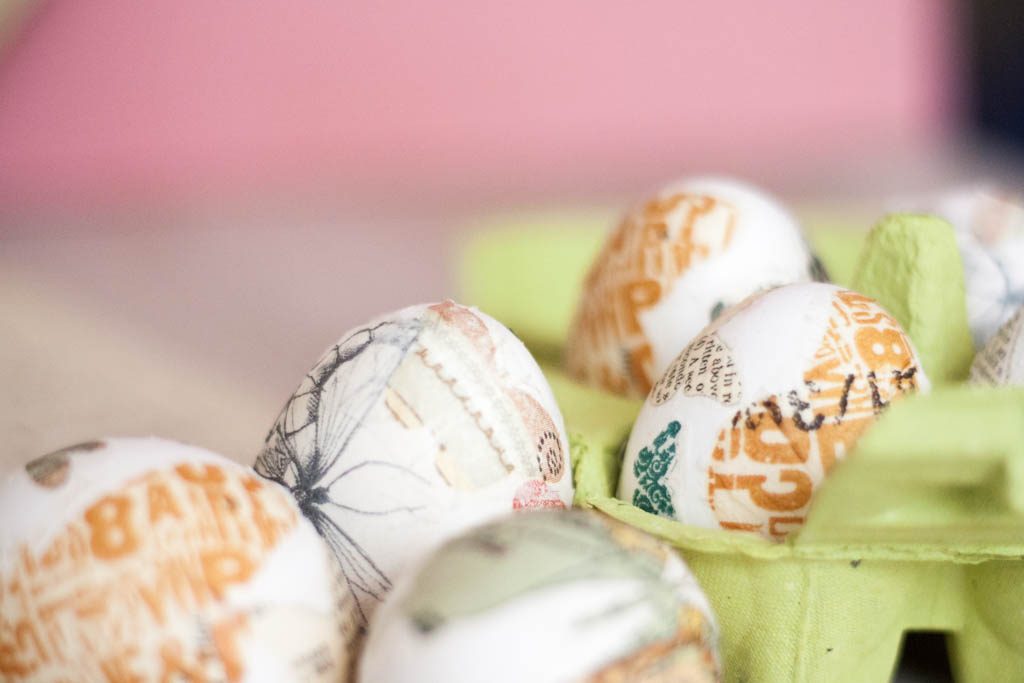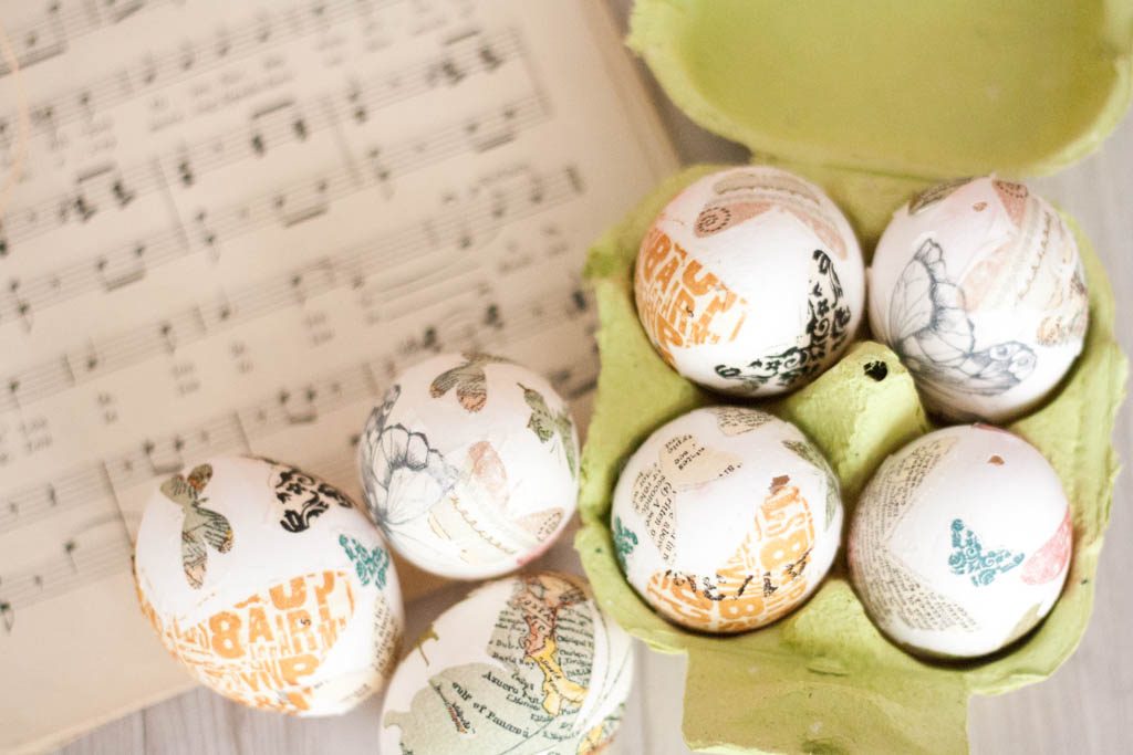Para la decoracion elige servilletas de color blanco y con motivos pequeños que se puedan recortar y no sean de tamaño mayor que el huevo.