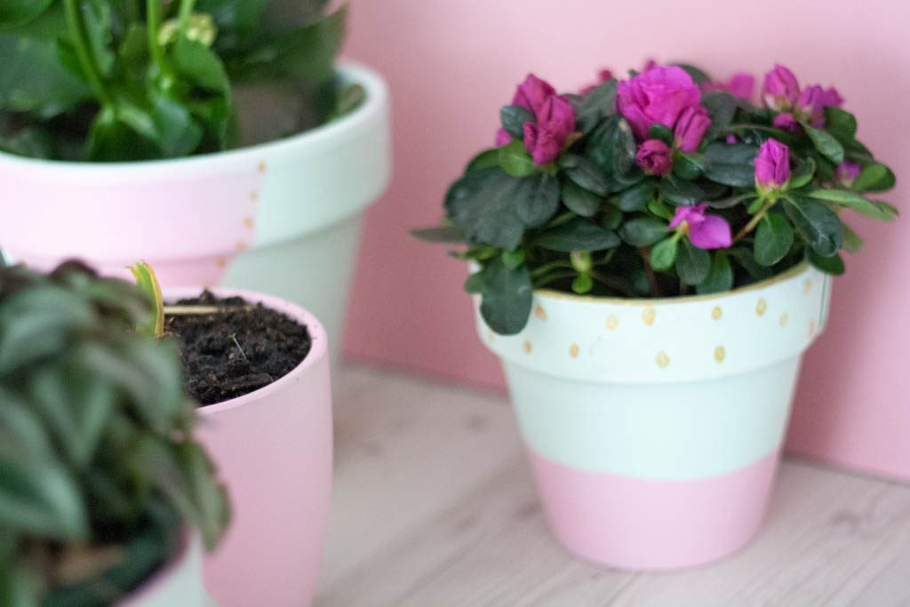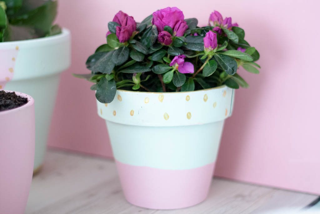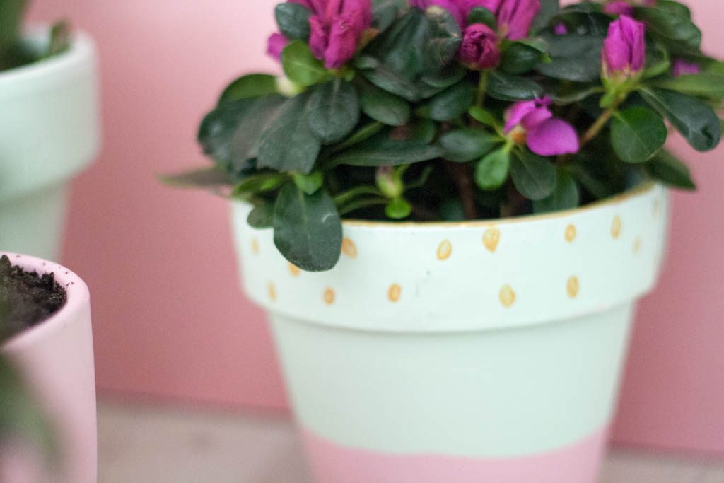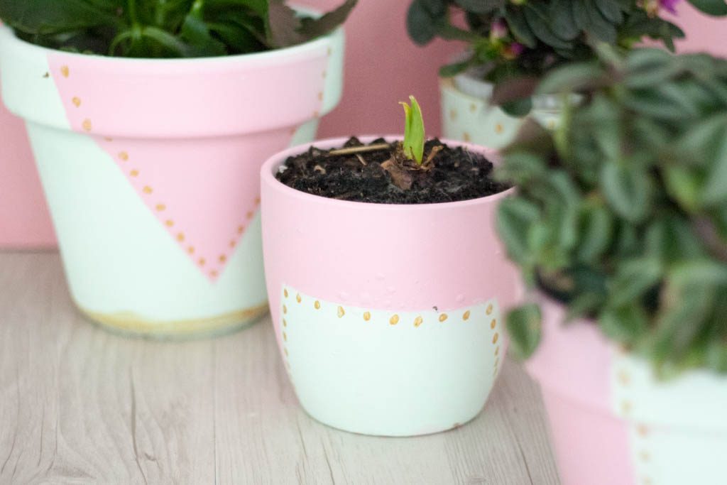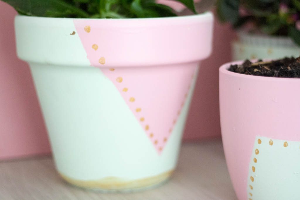 Yo he elegido un color rosa y otro verde mint con el que he dado dos capas hasta cubrir por completo la maceta.