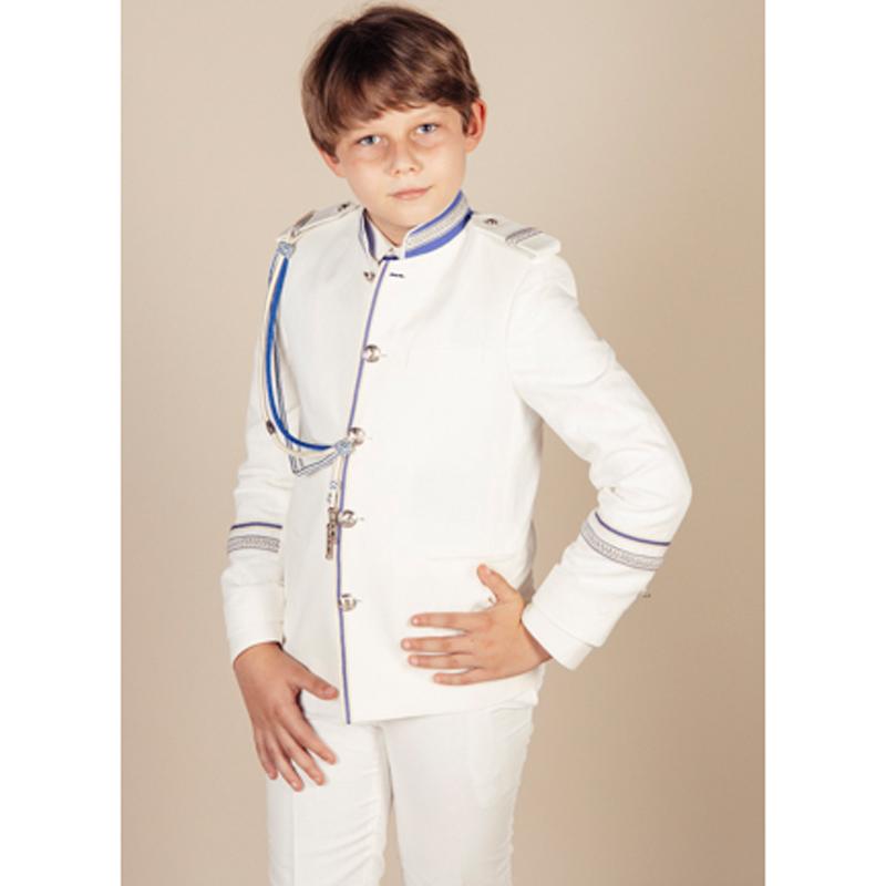Azul es el color principalmente usado en el traje de comunión para niño.