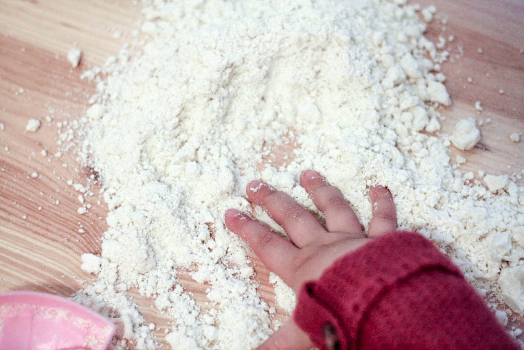 Para hacer arena cinetica en casa solo necesitas dos materiales: harina y aceite.