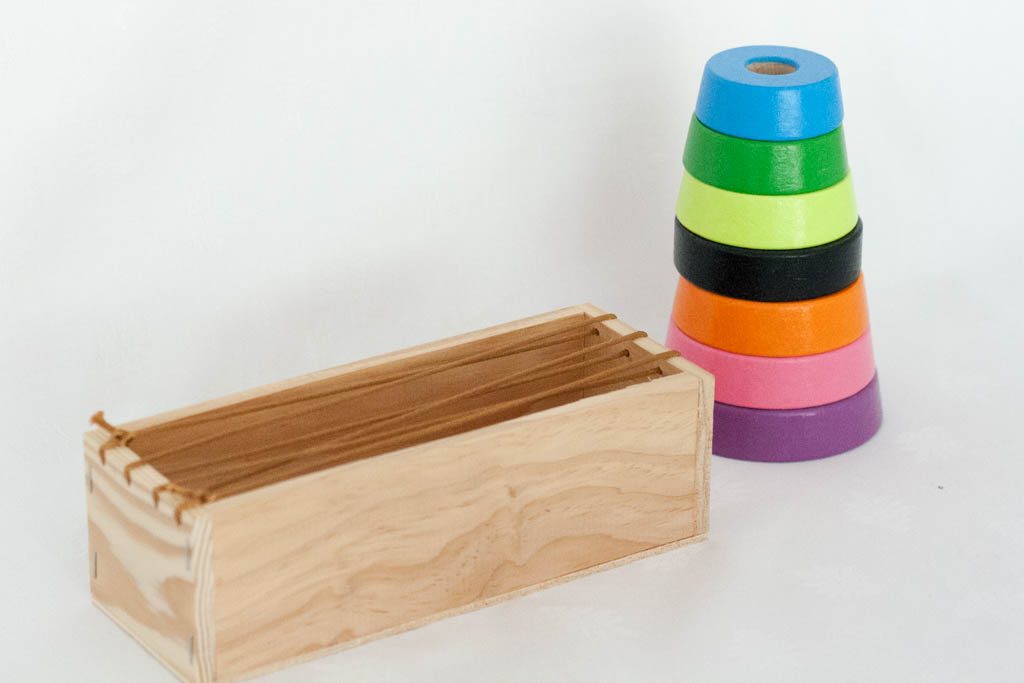 Esta caja de experimentación Montessori está pensada para niños a partir de 1 año. A través del juego de meter y sacar material de la caja, los niños trabajan la psicomotricidad fina a la vez que fomentamos su desarrollo cognitivo y sensorial.