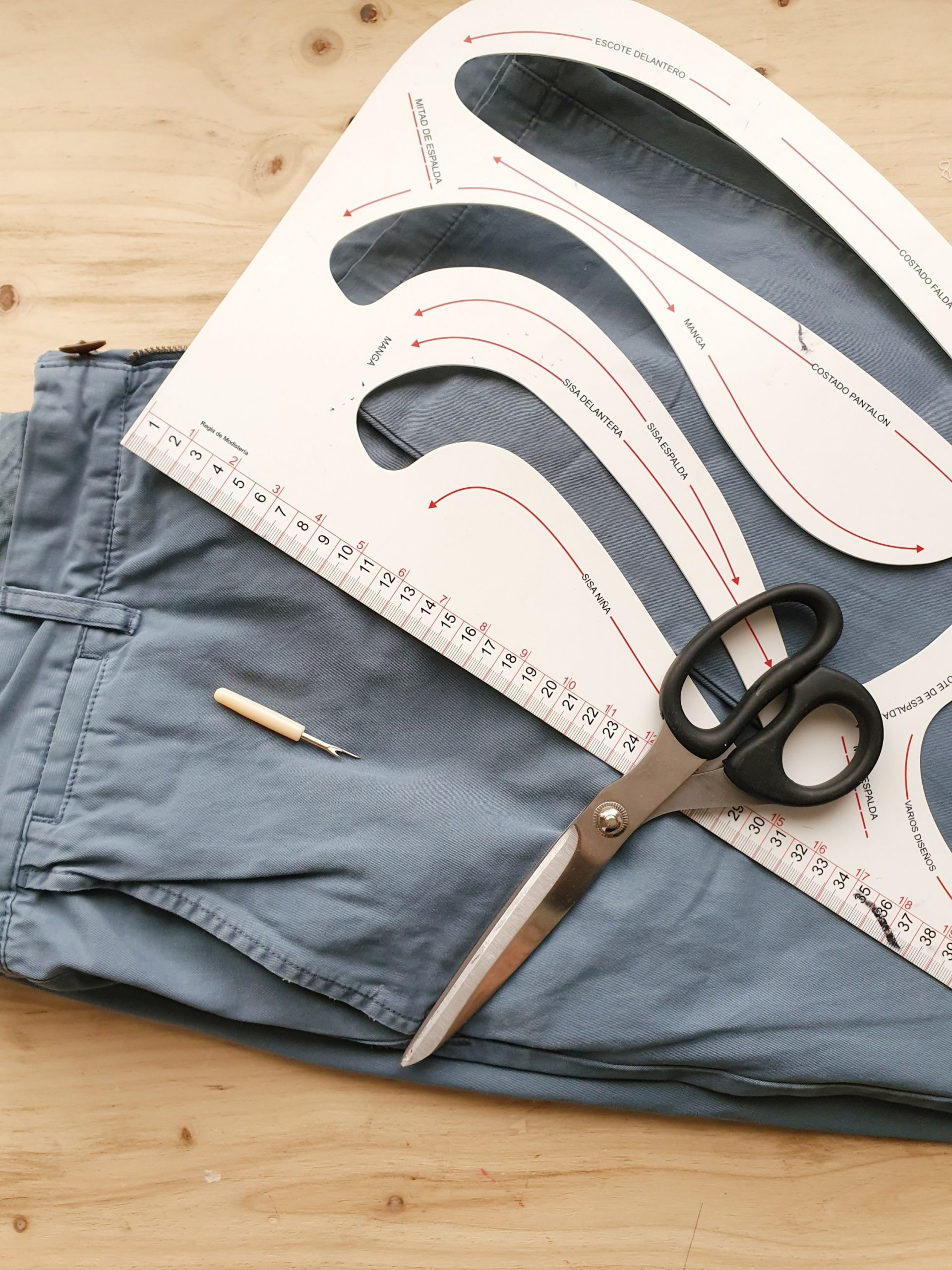 • Tela. Yo he reutilizado unos pantalones antiguos pero cualquier tela de algodón te servirá.