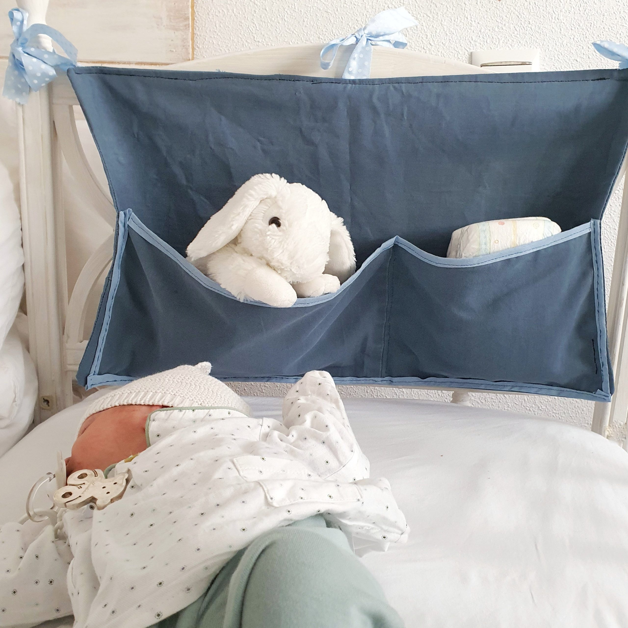 6. Coloca tres lazos en la parte superior para que pueda anudarse el organizador a la cuna o barrera de la cama.