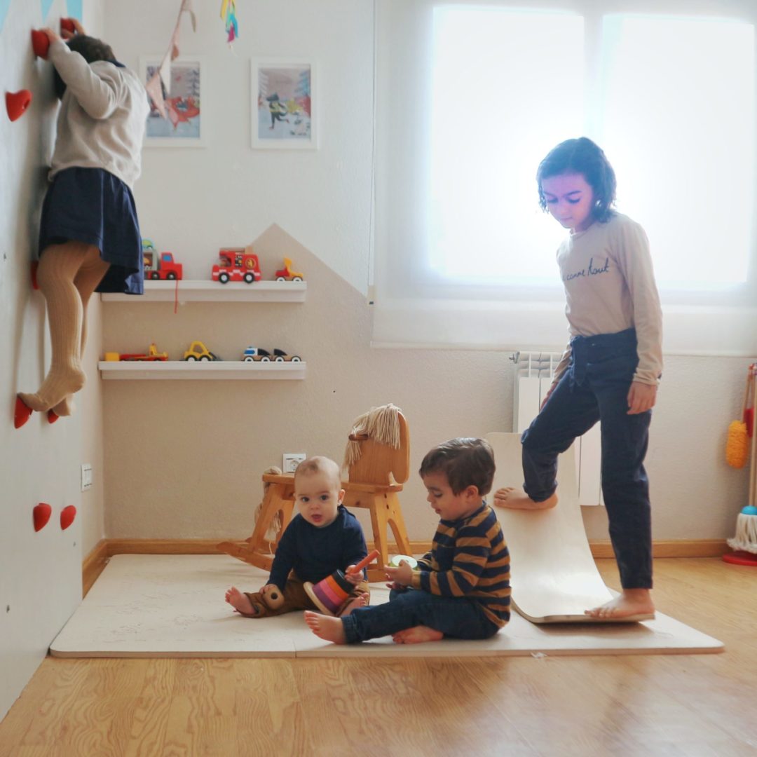 Poco antes del confinamiento hicimos un rocodromo en la habitación de juegos y ya os podéis imaginar lo acertado de la decisión.