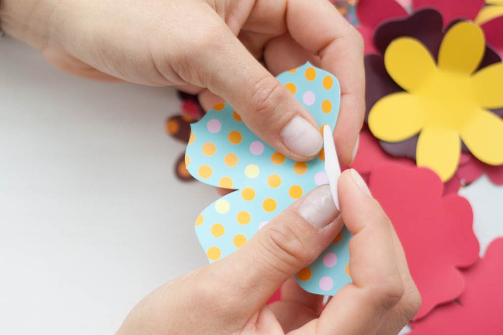 Para dar textura a las flores, dobla los petalos para darles movimiento.