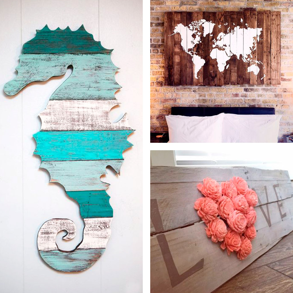 Para crear elementos de decoracion con palets necesitarás desmontar los palets (no siempre es fácil), pero tiene la ventaja de que no necesitas muchos palets ni que estén perfectos. Se trata de usar los listones o los bloques cuadrados que sirven de apoyo al palet.