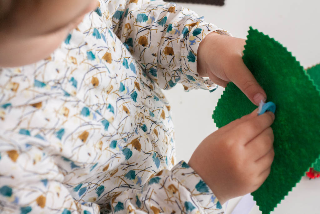- Atornilla, pega o clava cada uno de los materiales elegidos. Asegúratede que el niño no podrá quitar las piezas del tablero.