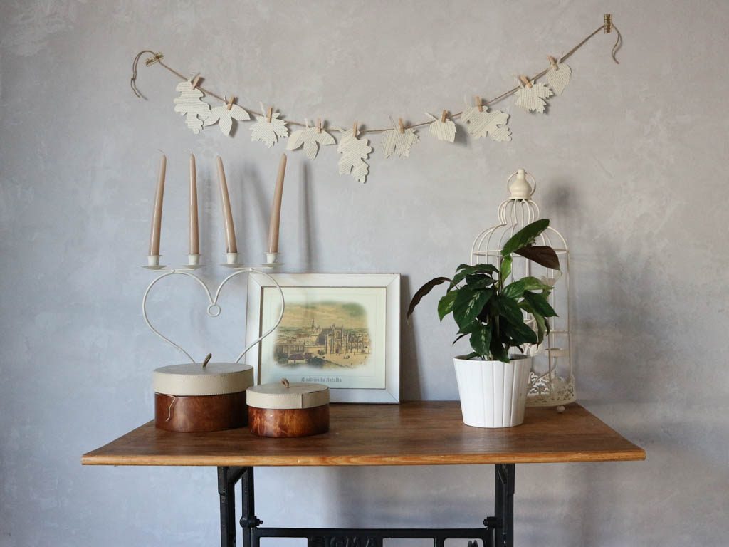 Una guirnalda, unas velas y unas piñas te ayudarán a dar un toque personal a tu decoración otoñal. Si además la decoración la haces tu con materiales sencillos, te sentirás mucho más satisfecha.
