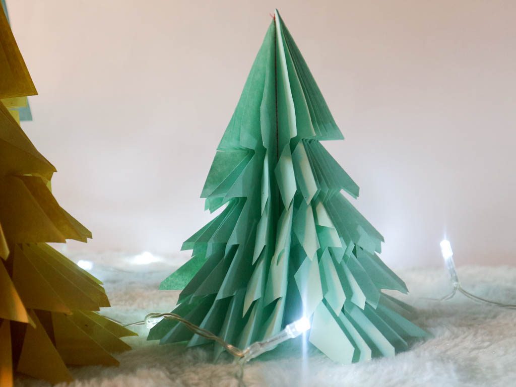 - Dibuja y recorta un triangulo dejando la costura en el medio. Por cada grupo de hojas tendrás 1 árbol.