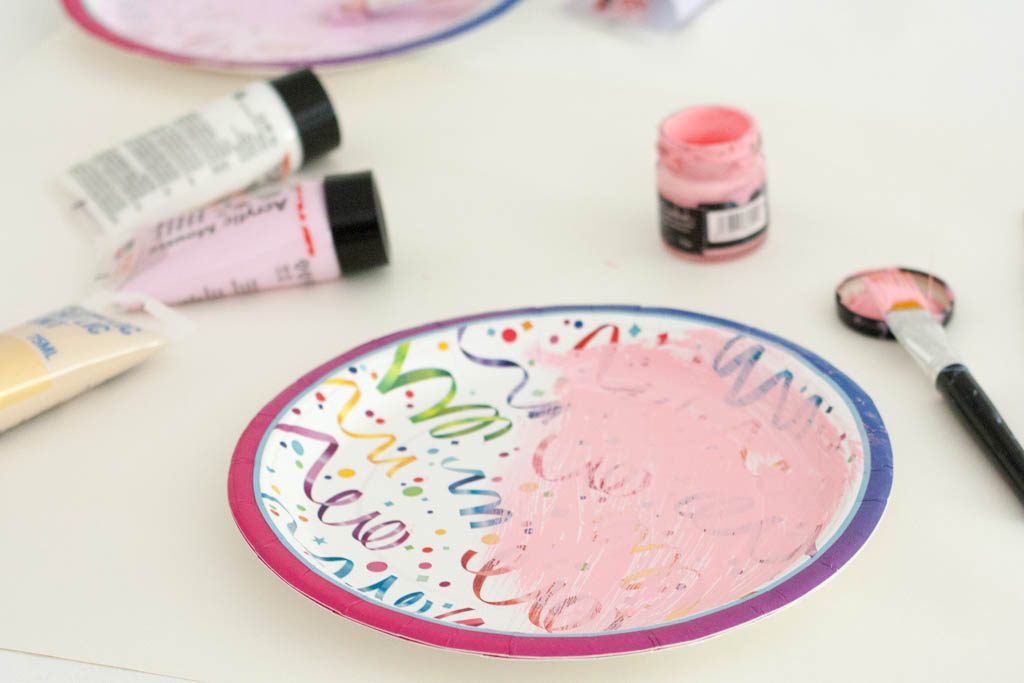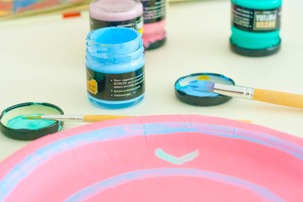 Elige un color para la base de tu plato y pinta toda la superficie. Da todas las manos que necesites para lograr cubrir por completo el dibujo que venga impreso en el plato.