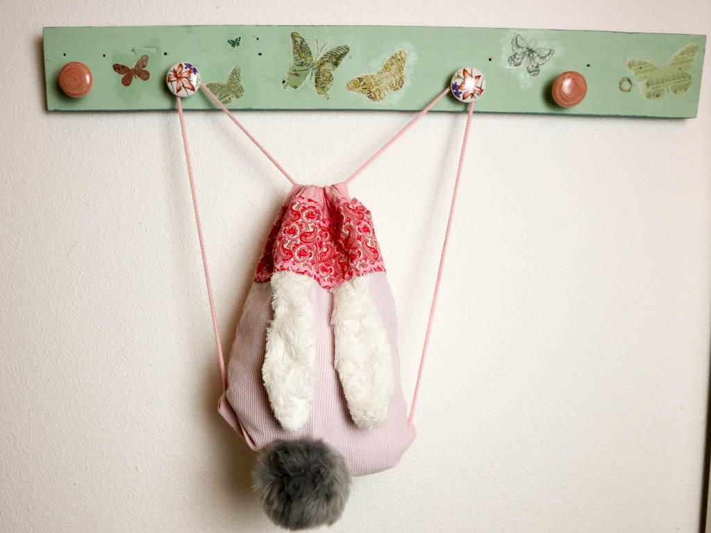 Siguiendo el patrón de la mochila básica, existen miles de opciones de personalización. La del conejo, es solo una de muchas. ¿que ideas se te ocurren?