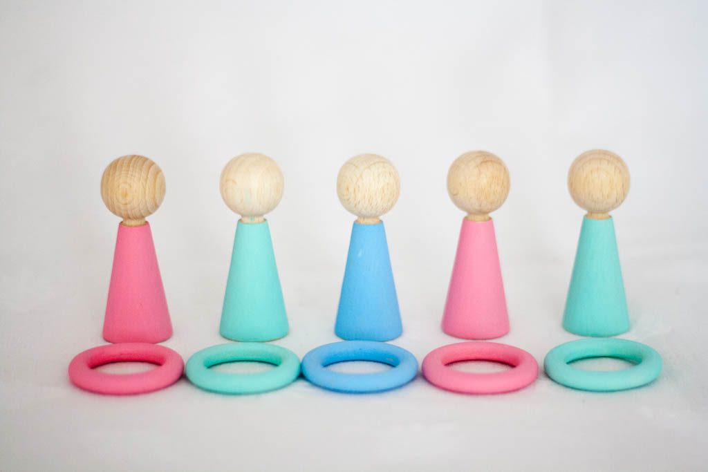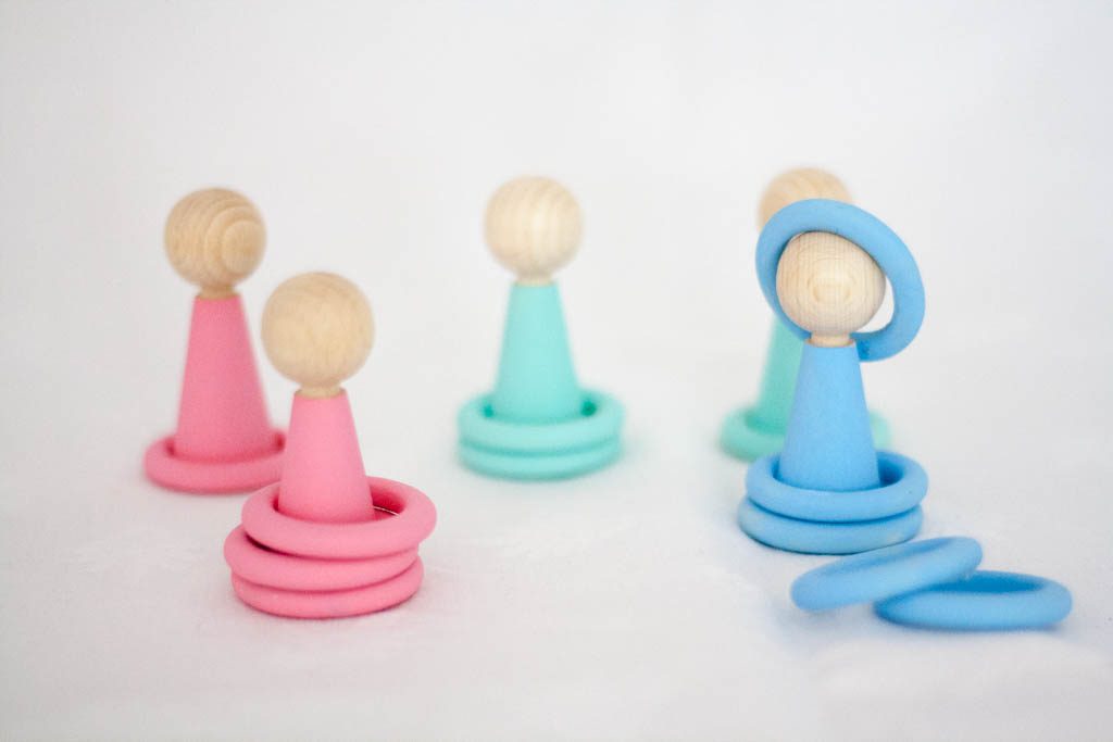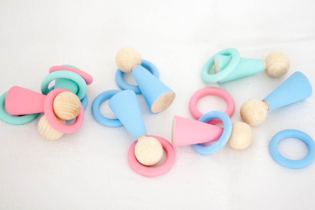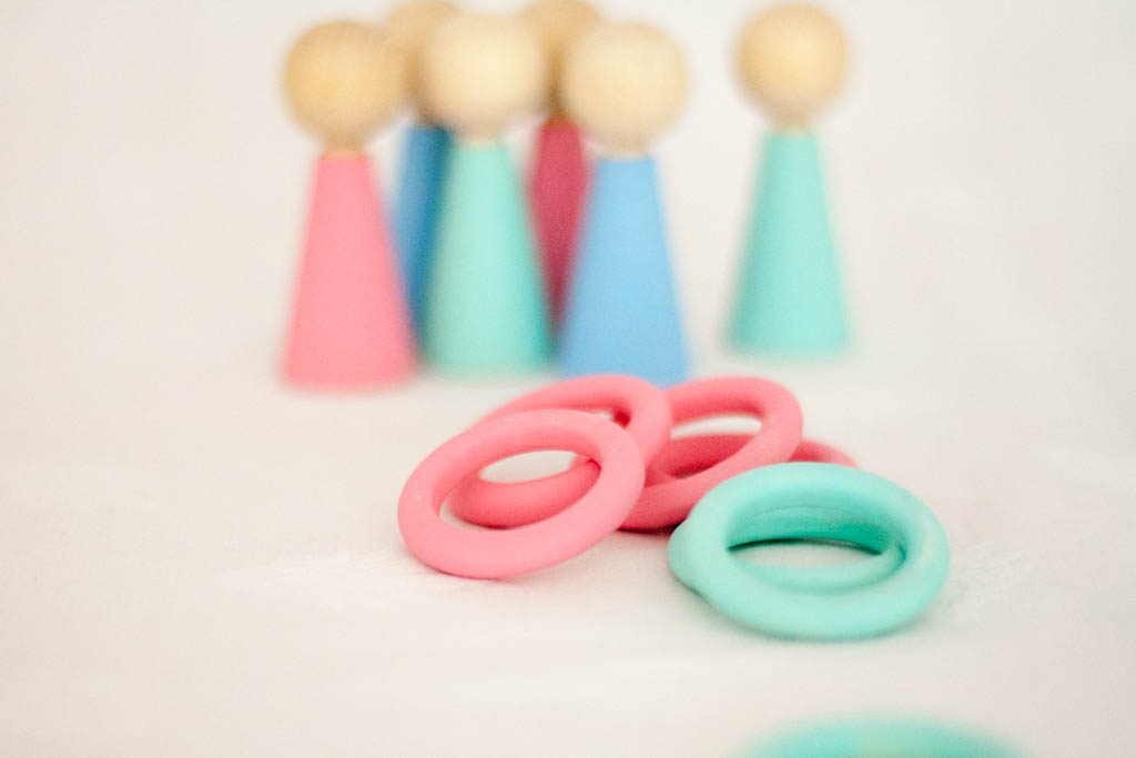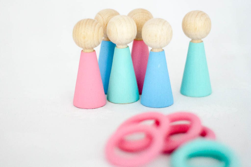 - Anillas de madera del tamaño de los muñecos. Puedes comprarlos aqui.