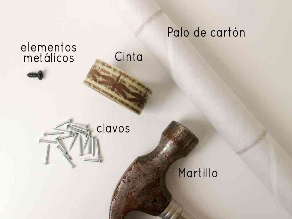 - Clavos. De un tamaño pequeño para que no atraviesen el palo completamente pero que sean lo sufcientemente grandes como para atravesar más de la mitad del tubo.