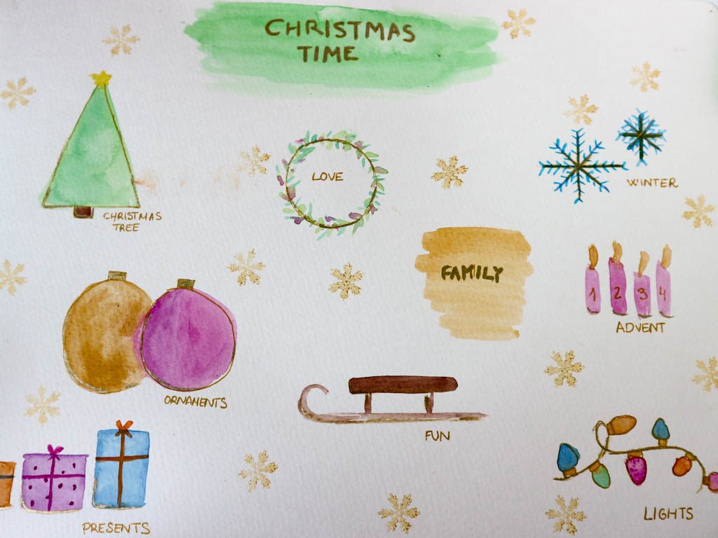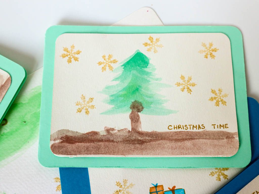 Para hacer algunas de las postales de este año, hemos usado acuarelas.