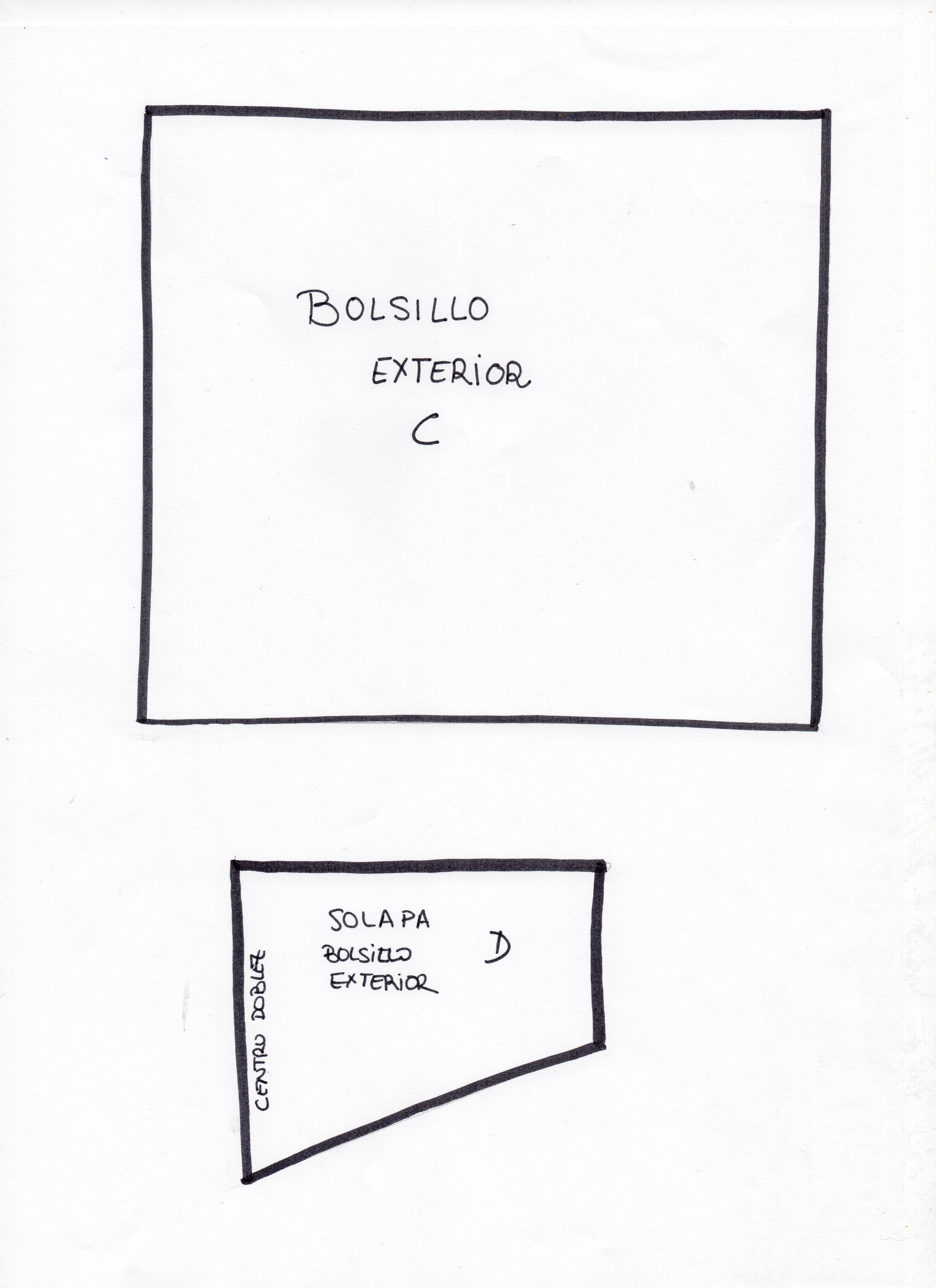 - Corta una vez el patron del bolsillo exterior (patrón C)