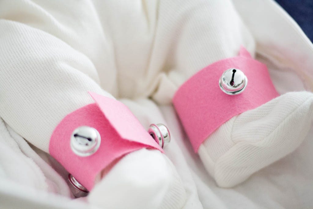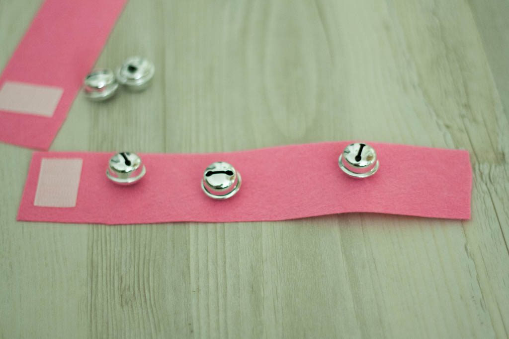 - Cose los cascabeles asegurándote de que queden bien fijados para que no sean peligrosas para el bebé.