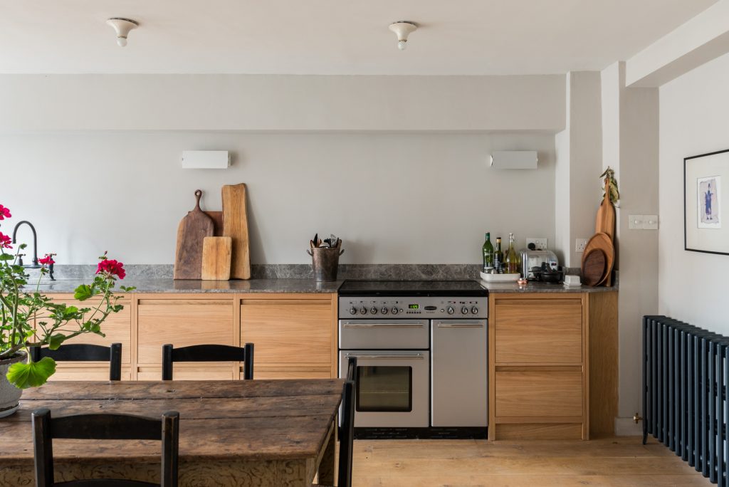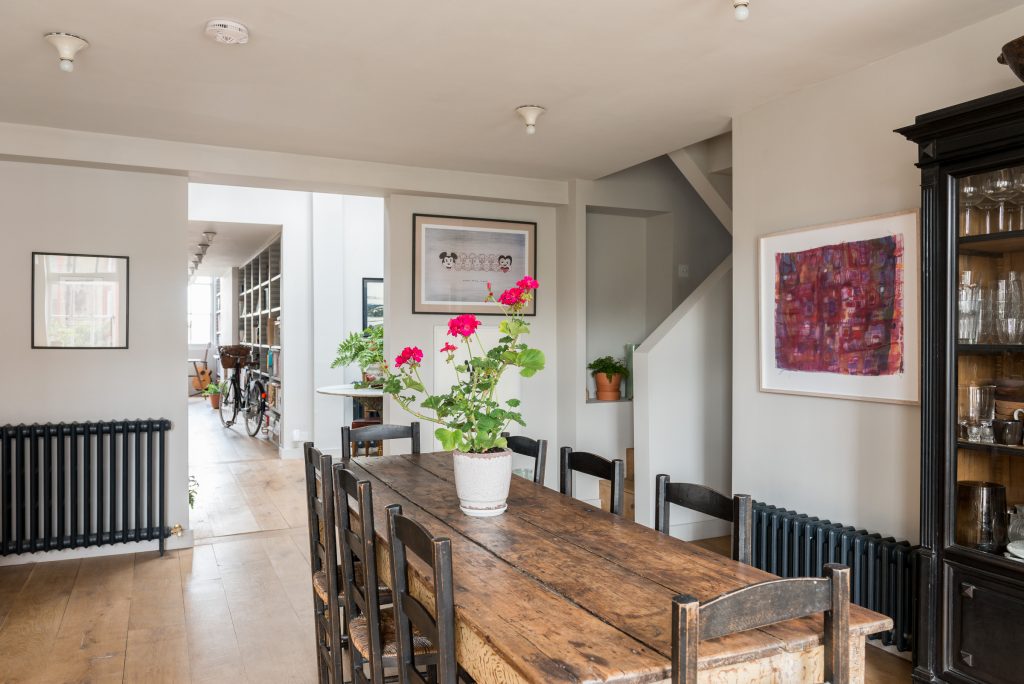 La cocina y comedor forman un espacio único presidido por una antigua mesa de campo que convierte a este lugar en centro de reunión familiar.