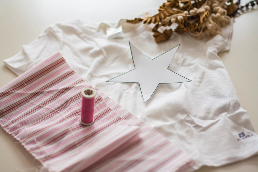 - Retira el papel de la entretela sobre el que dibujaste la estrella y pegalo a la camiseta con la plancha.