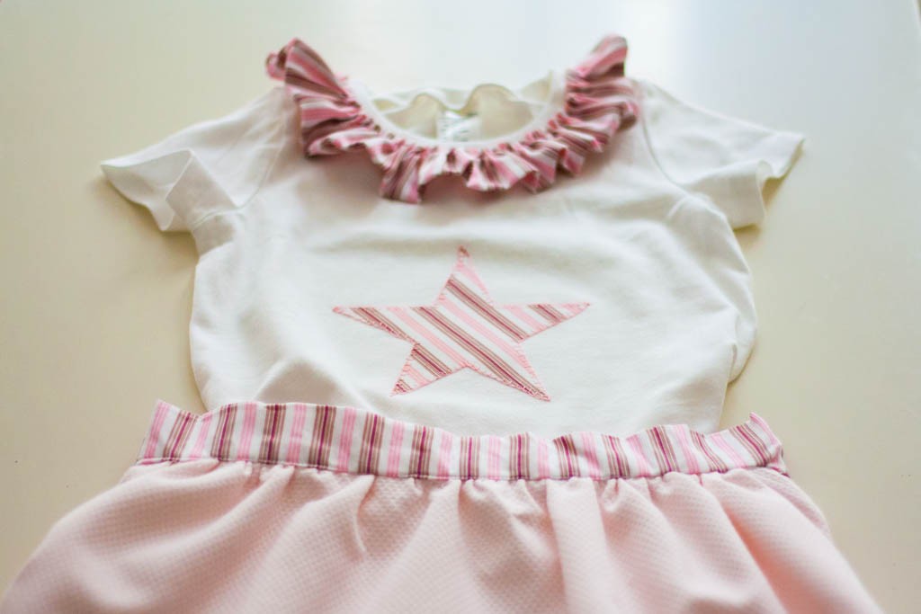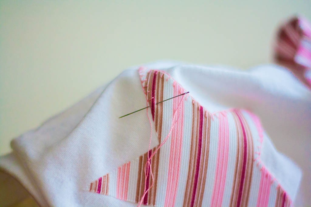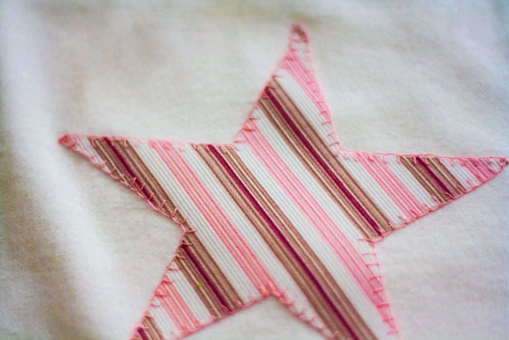 - Al usar entretela evitarás que la pieza se deshilache y además conseguirás fijarla a la prenda, pero para que el resultado se más bonito, puedes hacer un sencillo pespunte o festón alrededor de la estrella. En caso de que la entretela que hayas usado no sea de doble cara (es decir, que solo pegue por uno de los dos lados) este paso será imprescindible.