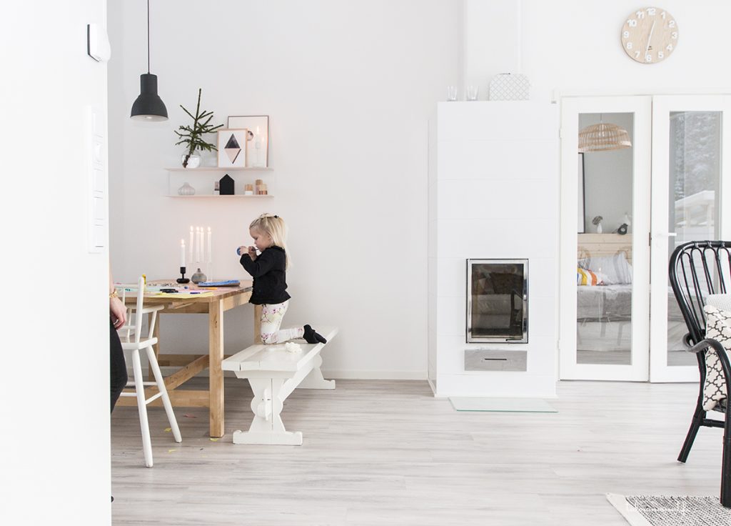 El color blanco combinado con negro, gris y beige hacen el tandem perfecto de la decoracion nordica. Los toques de colores brillantes se encuentran en pequeños elementos.