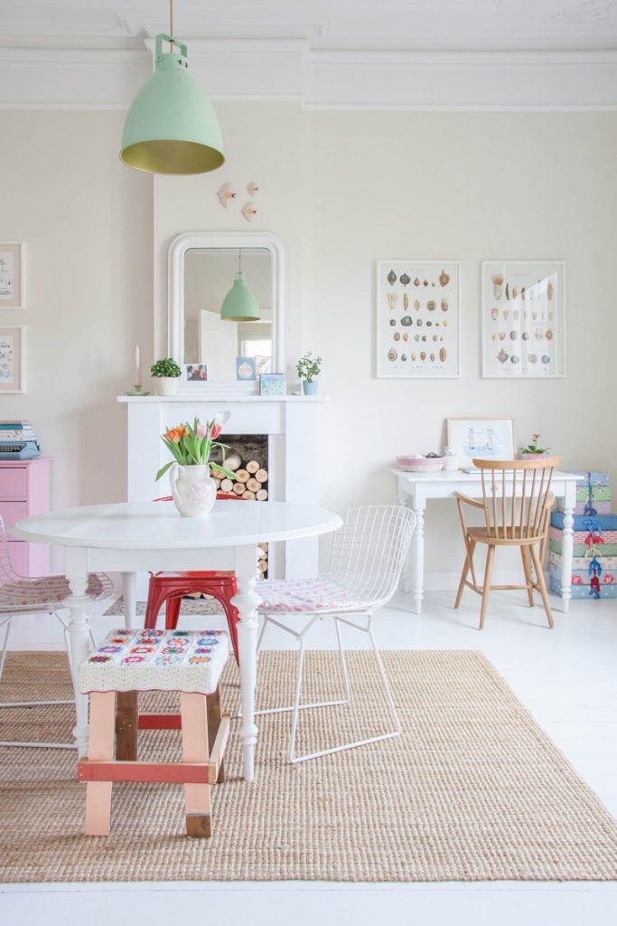 El uso del color pastel, la elección de las lamparas o la reinvención de las chimeneas son un acierto en esta casa.