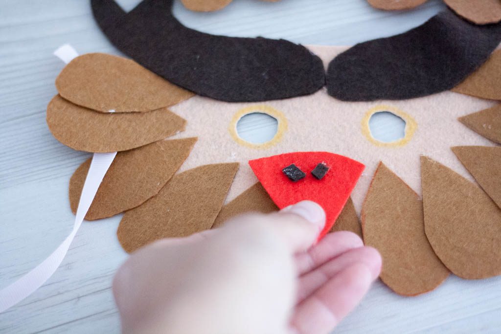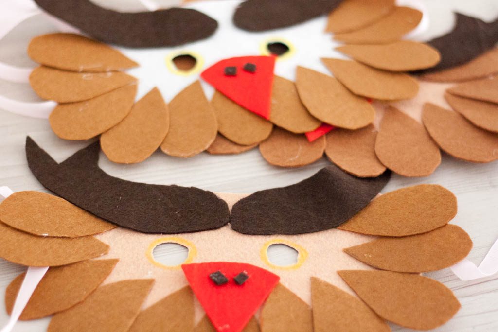 A partir de un antifaz base, añadimos los detalles de fieltro para conseguir nuestros buhos.