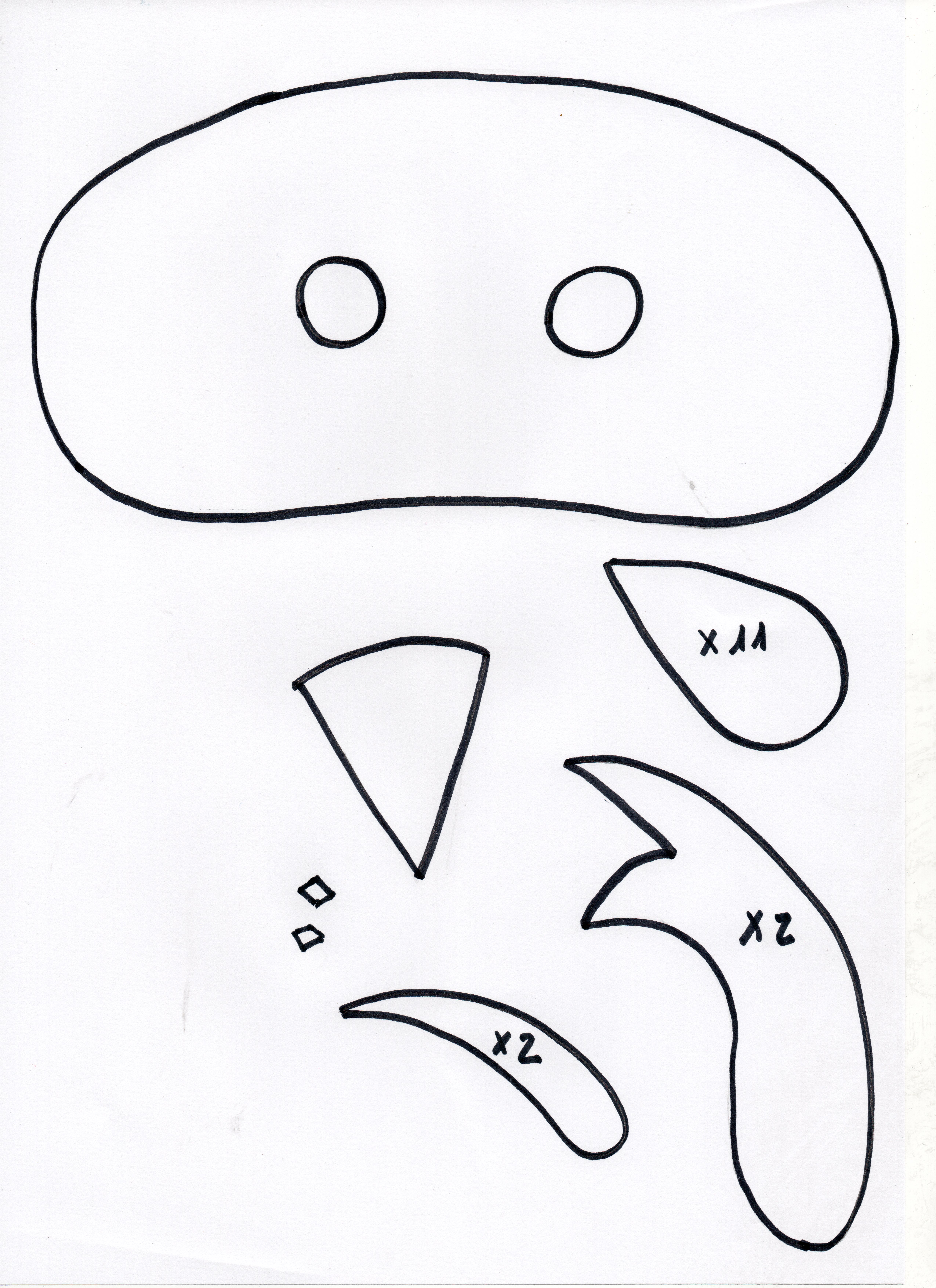- Calca y recorta cada pieza sobre el color de fieltro correspondiente.